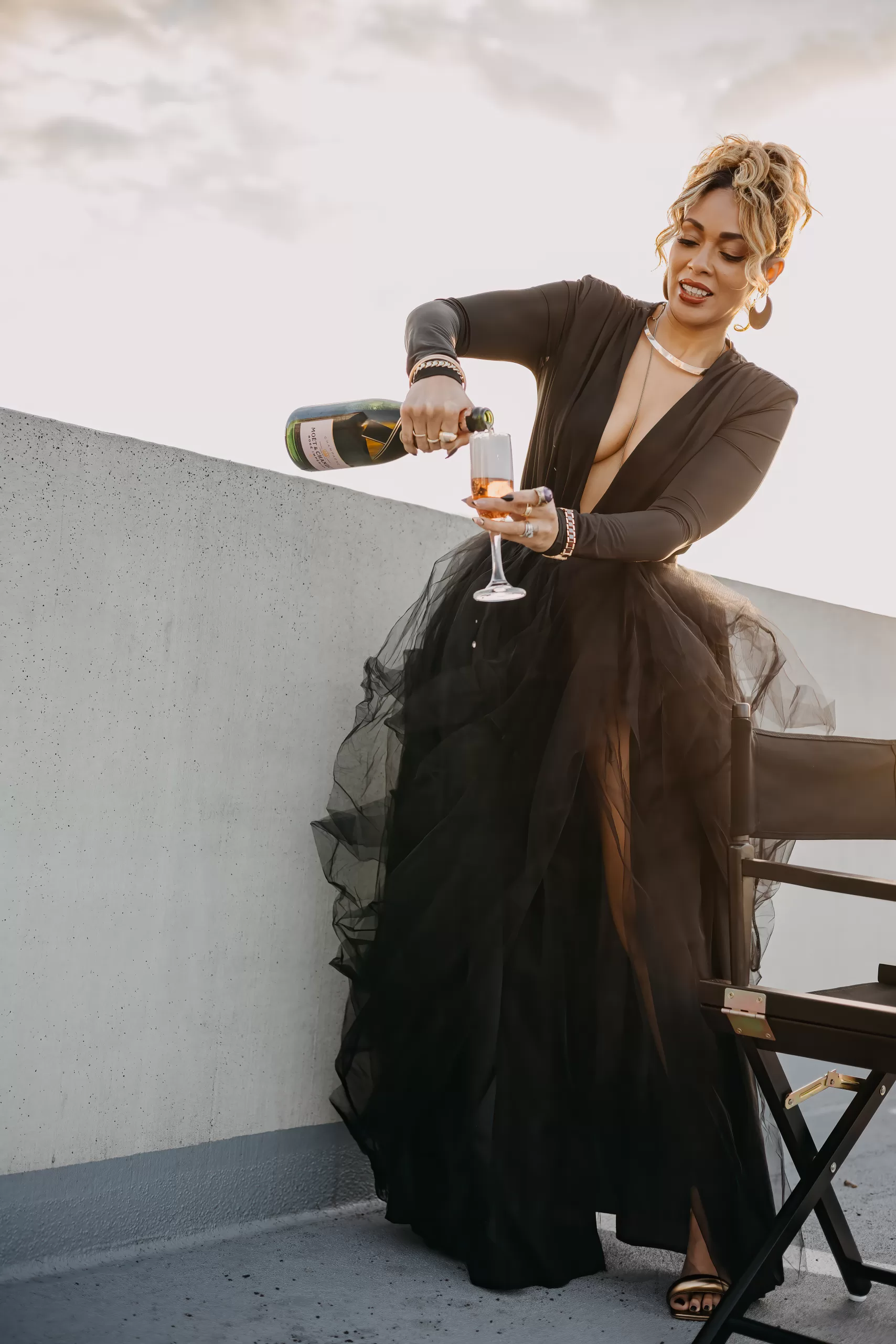 Channel your inner Duchess and opt for a beautifully staged, luxurious outdoor picnic. Think frilly, plush blankets, a gorgeous crudité platter, fresh flowers, and your sparkling beverage of choice. You can wear a flowy dress or soft, linen clothes and capture those special, relaxing moments of unbothered self-care.